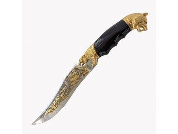 В комплекте: кожаные ножны, паспорт изделия, сертификат (не относится к гражданскому холодному оружию)