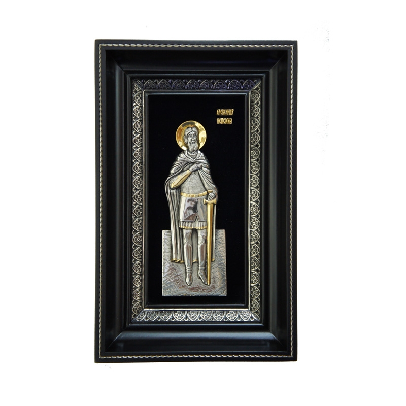 медь, посеребрение, позолота, ручная полировка, рама из ясеня Размеры: 180x280 мм